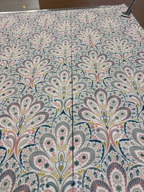 Once the dimensions were confirmed, we moved to the fabric layout stage. Matching patterns isn’t just about lining up designs — it’s about understanding how the fabric will drape, fold, and look in motion. Our craftsmen carefully plotted the fabric so the central motif aligned perfectly in the middle blind, with the side blinds continuing the pattern naturally on either side. The result: a seamless visual flow that feels calm, balanced, and beautifully intentional.
